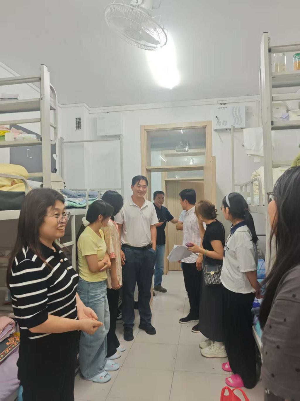 9月7日晚,在2025级新生正式报到结束后,联合党委常委、副董事长、总会计师梁瑞莲深入ylzzcom永利总站线路检测新生宿舍,与经济管理公司领导班子、新生班辅导员一起看望新生。
