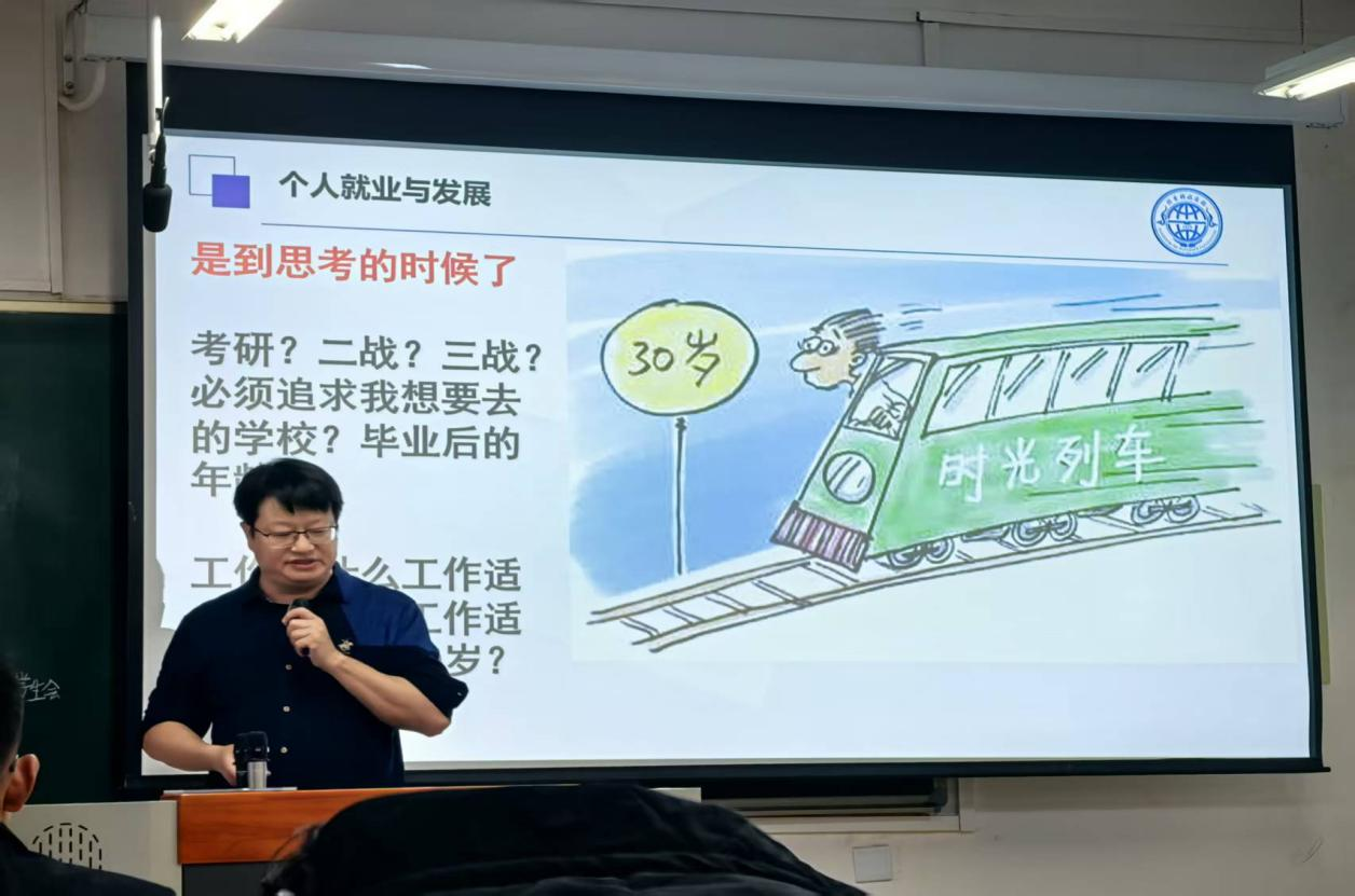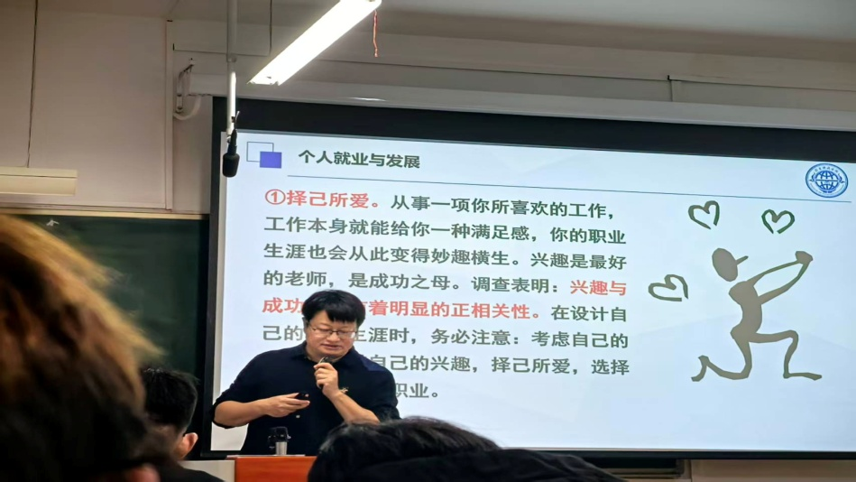 高磊老师系统解析各类就业单位的核心特点、适配岗位及发展路径,帮助同学们结合自身需求精准定位职业方向;围绕当前就业市场趋势,强调就业危机意识的重要性,指导同学们通过技能提升、多元储备主动应对职业风险;针对老员工常见的就业焦虑、彷徨心态,分享实用的调整方法,倡导建立踏实进取、长期主义的职业心态。