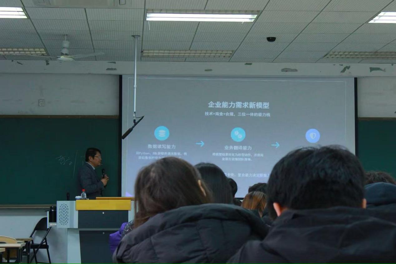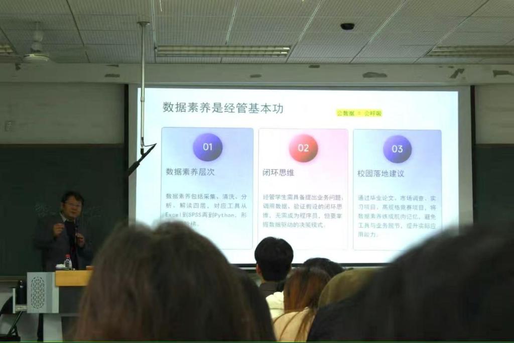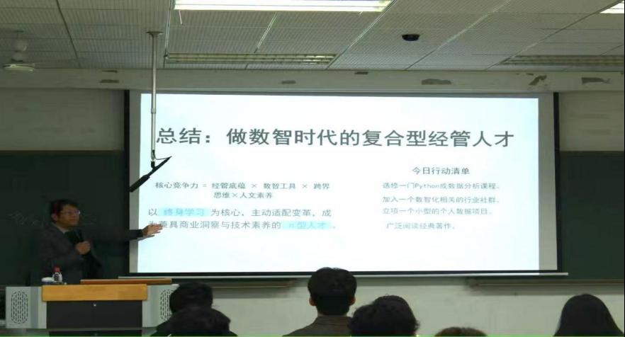 不仅如此,王老师还告诉同学们,要培养并不断扎实数据素养这项基本功,他说,在当今社会发展大环境下,会数据等于会呼吸,作为经管员工的我们更应熟练掌握、运用数据,使其真正地服务于我们的生活和学习。